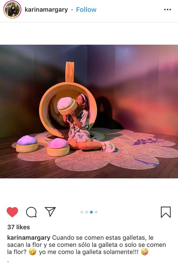 El tema principal en mi obra es la memoria y la cotidianidad. Trato de crear historias, retratar la vida cotidiana, mostrar dónde me muevo, dónde vivo. En la instalación “Visitando a abuela” trabajo de forma poética con mis propios recuerdos en este caso el visitar a abuela que siempre tenia café y las galletitas florecita. De manera gigante asi aumentando su nostalgia acogedora, el espectador se encuentra en una escena q se sumerge al mundo de las memorias.